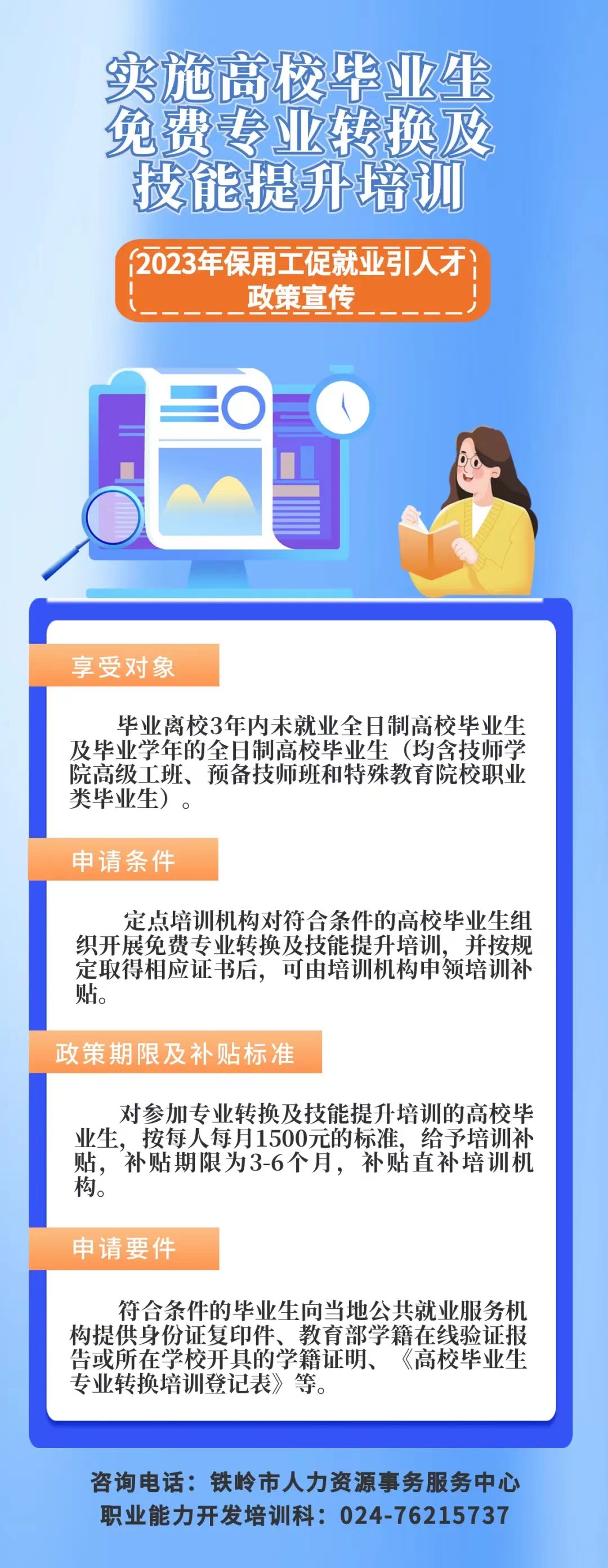 2023年保用工促就业引人才政策:实施高校毕业生免费专业转换及技能提升培训